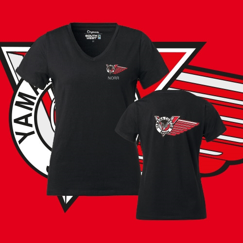 Yamaha Custom Club logo tryckt på vänster bröst med regions beteckning samt stor logo tryckt på ryggen,