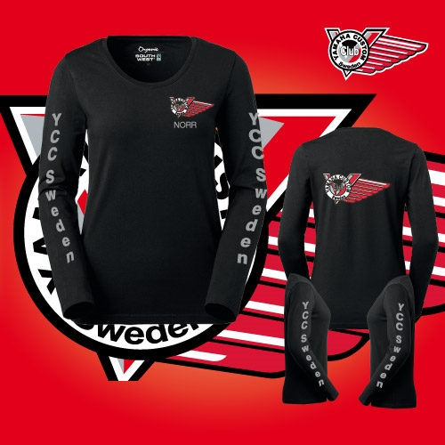 Klubblogo tryckt på vänster bröst med regions beteckning, stor logga tryckt på ryggen, armtryck med YCC Sweden